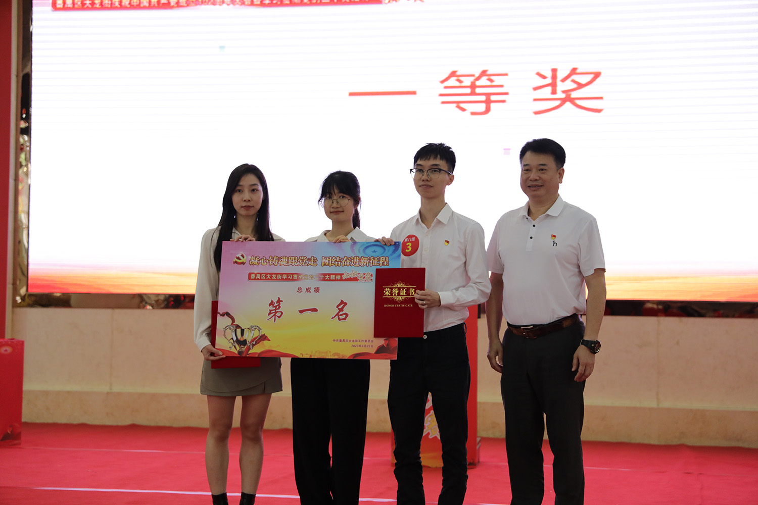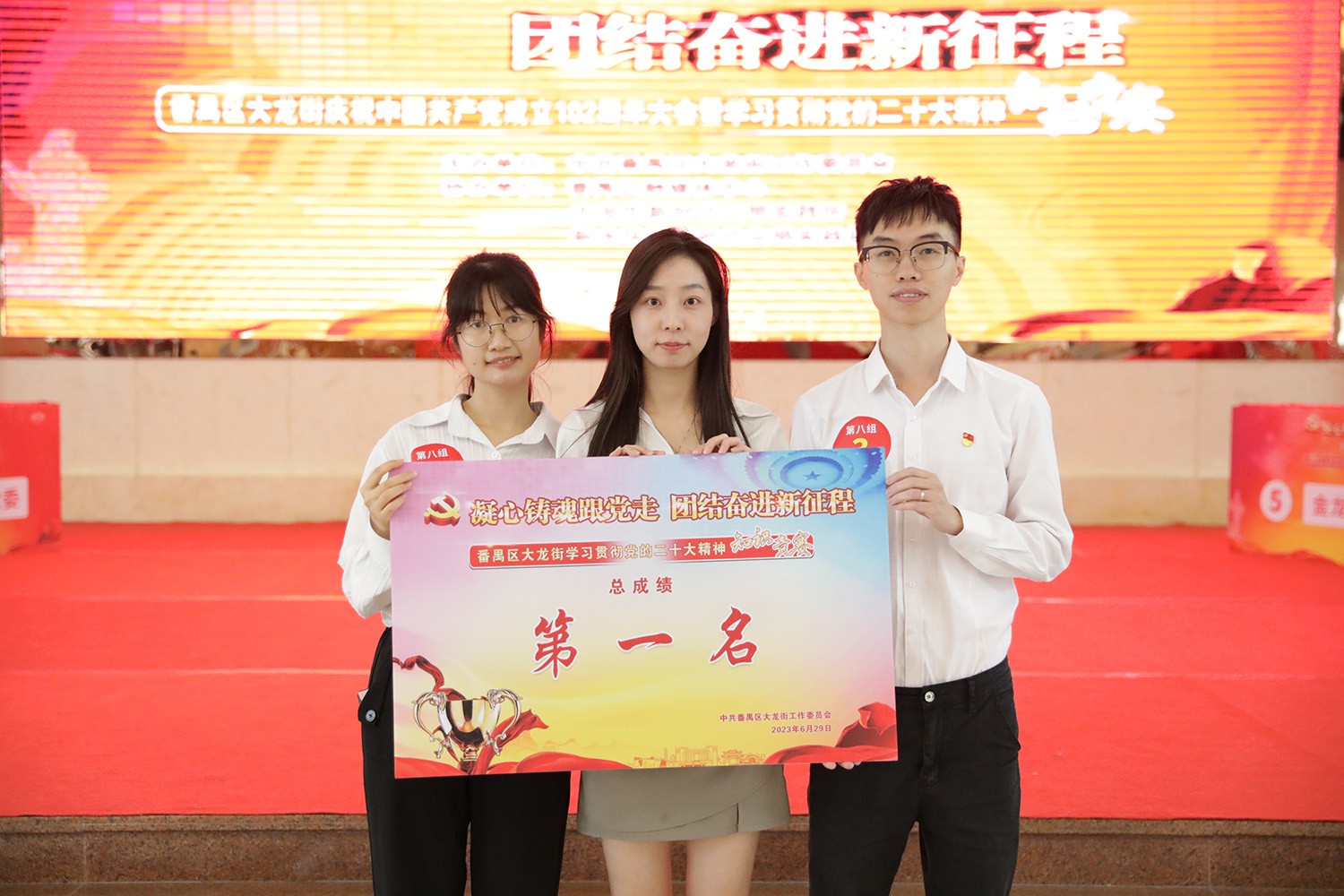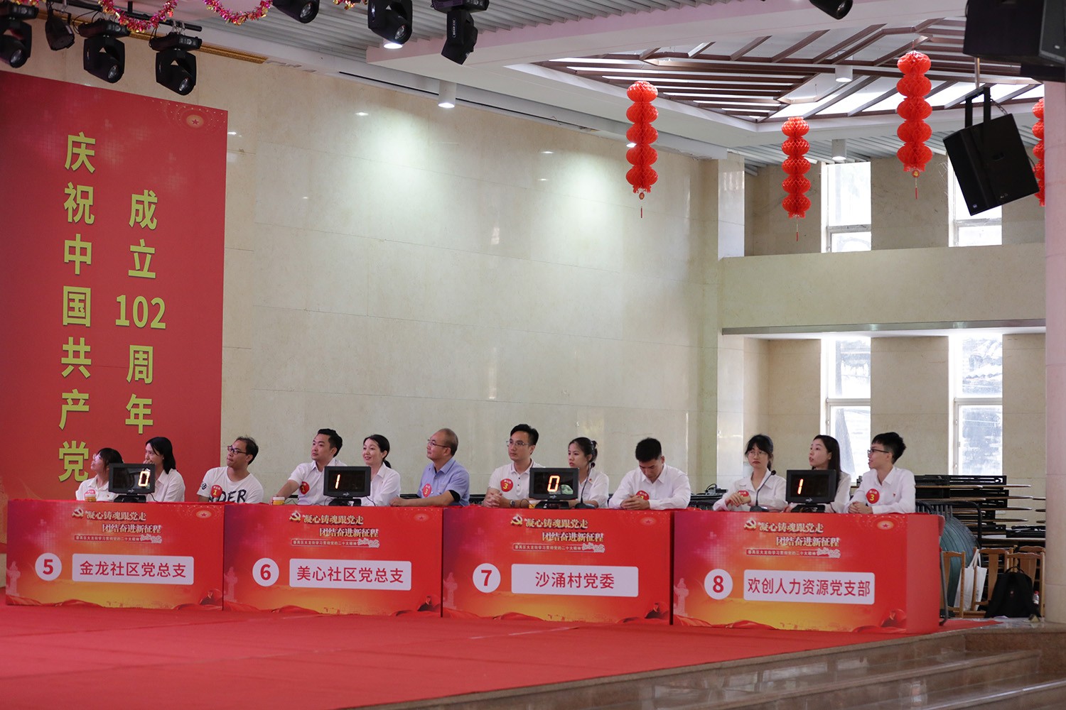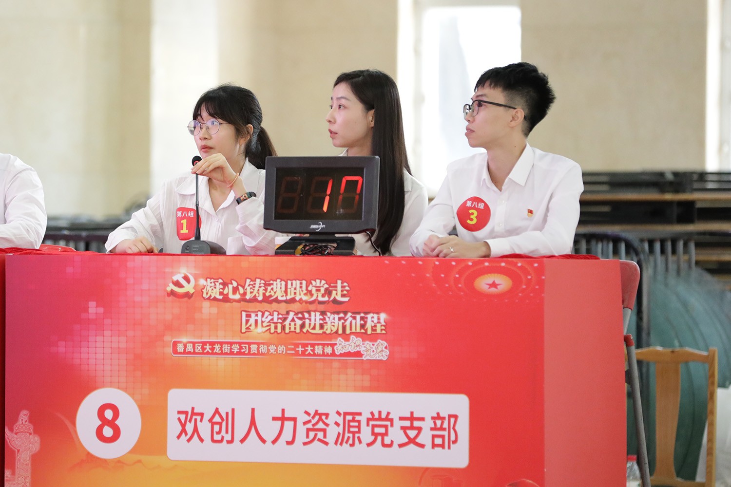 为庆祝建党102周年,6月29日下午,中共番禺区大龙街工作委员会联合番禺区融媒体中心于新水坑文化中心举办“学习贯彻党的二十大精神知识竞赛”活动。经过激烈角逐,8XBET(中国)一站式服务平台集团党支部代表队勇夺桂冠!