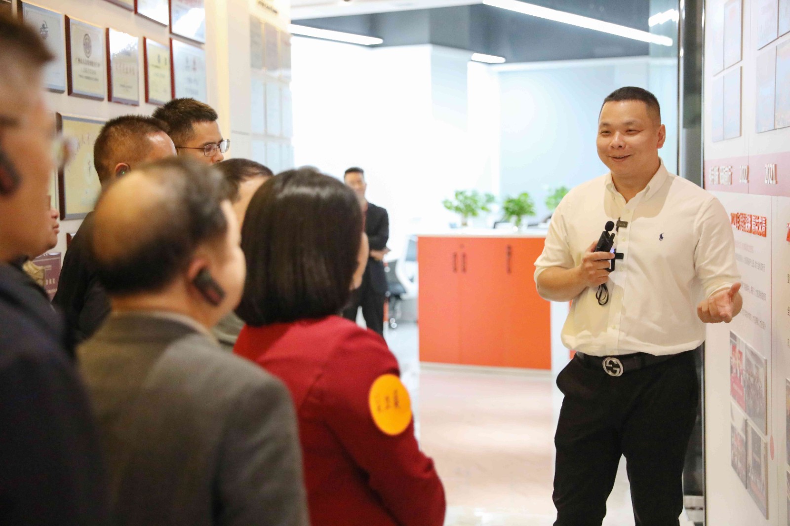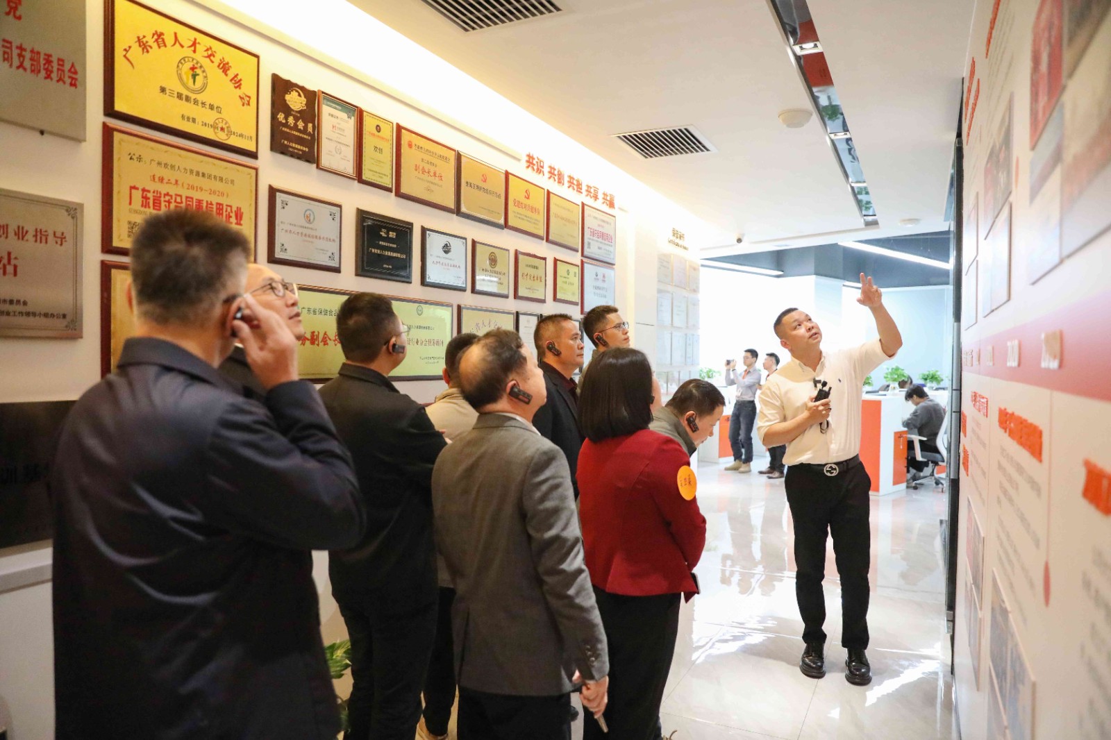 △罗宁弟董事长向来宾们介绍8XBET(中国)一站式服务平台文化墙