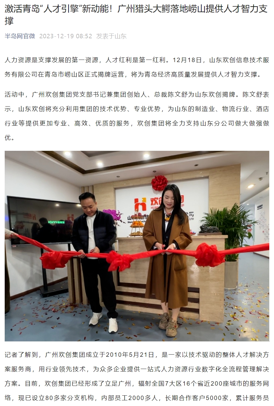 半岛网:激活青岛“人才引擎”新动能!山东8XBET(中国)一站式服务平台信息技术服务有限公司正式揭牌运营